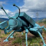 Nejsou tu však pořád dokola jen ovce a krávy. Podél cesty se dá najít ledacos. Třeba takový gigantický modrý mravenec, který natáčí film o velikém mraveništi přímo před ním…